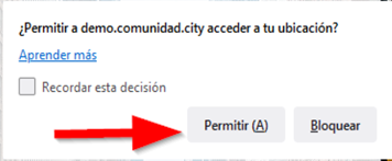 Lo que viene ahora es fundamental para el funcionamiento de la APP. La primera vez que accedas a la APP, esta te solicitará permiso para usar las funciones de ubicación de tu teléfono (GPS), esto, mediante el siguiente mensaje: