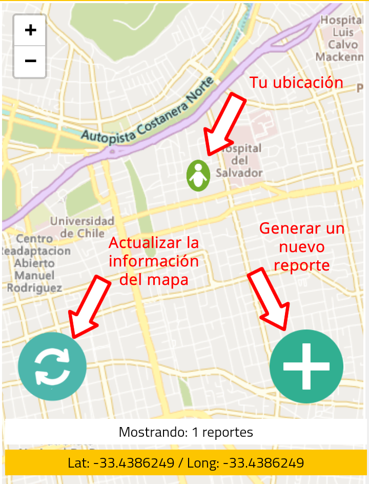 La APP para la recolección de información te permitirá generar un reporte desde el territorio, en el que podrás describir la situación, adjuntar una foto y además incluir las coordenadas del lugar, de tal forma que podamos ubicarlo en forma automática en un mapa. Todo lo anterior, desde tu teléfono móvil.